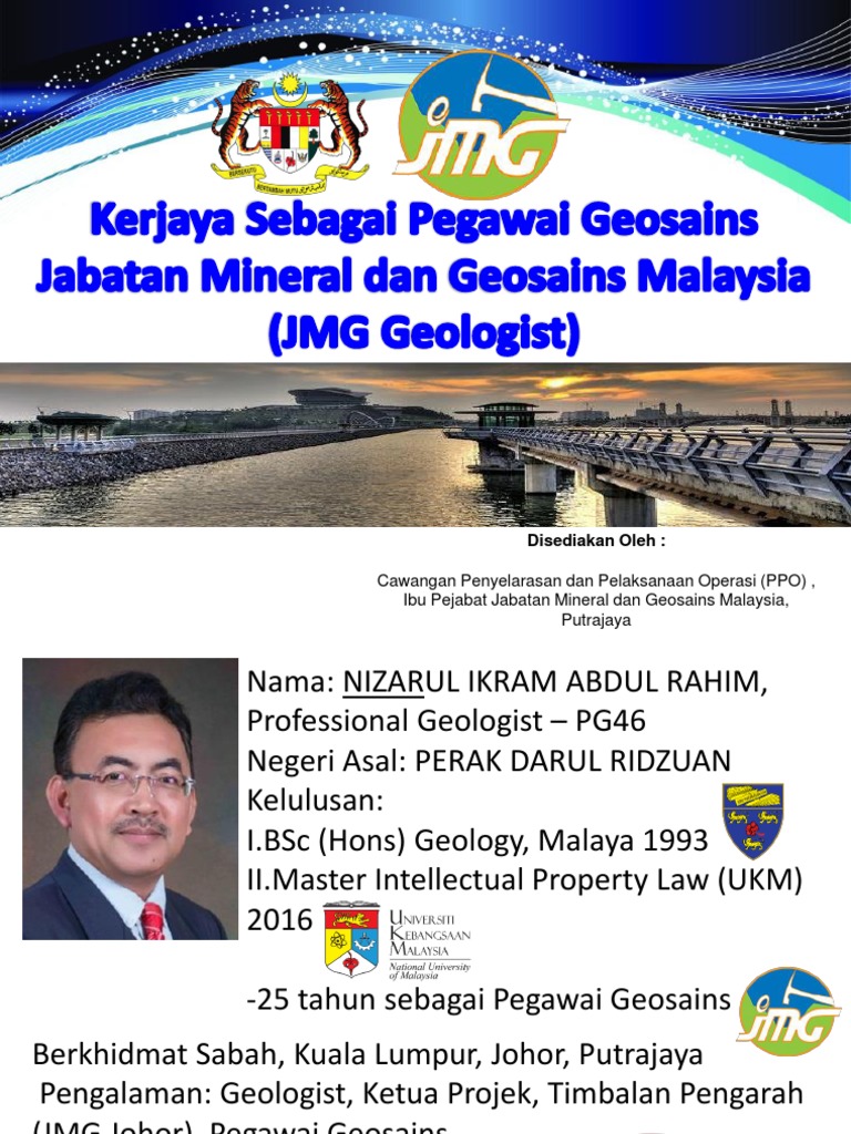 Jabatan mineral dan geosains malaysia merupakan salah satu jabatan kerajaan di bawah kementerian tenaga dan sumber asli (ketsa). Ketua pengarah jmg, datuk yunus abdul razak berkata, pembinaan telaga tiub yang. Pernah berkhidmat sebagai pegawai kajibumi di jabatan penyiasatan kajibumi malaysia (kini dikenali sebagai jabatan mineral dan geosains, jmg). Satu lawatan oleh jabatan mineral dan geosains negeri johor ke koperasi kilim di kilim geoforest park telah diadakan pada 5. Mineral perindustrian kuching, bahagian kuching, sarawak, malaisia jabatan mineral dan geosains, sarawak.